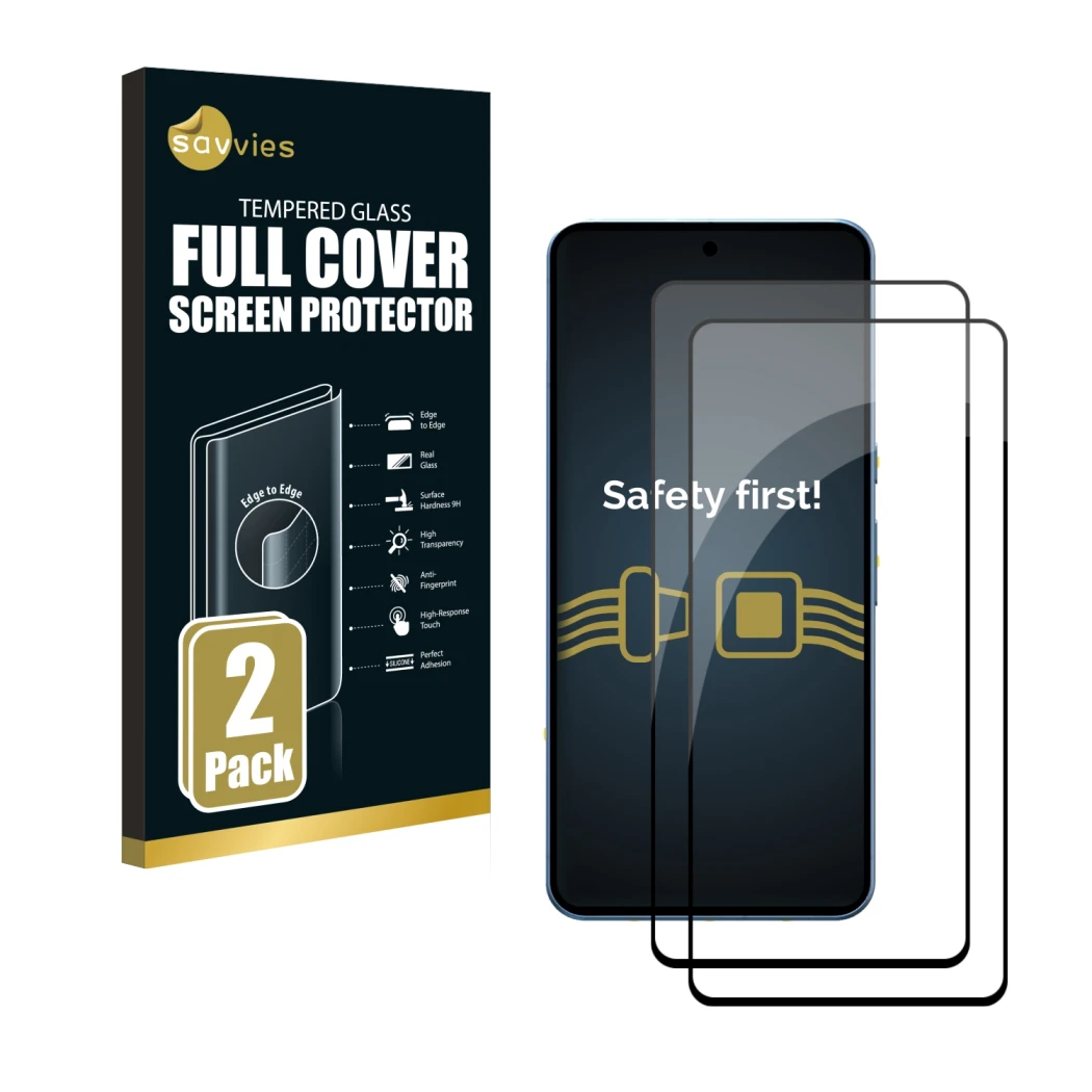 2x Savvies Full-Screen Panzer Schutz-Glas für Google Pixel 8 (schwarz)