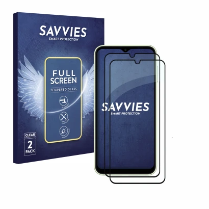 2x Savvies Full-Screen Panzer Schutz-Glas für Samsung Galaxy A14 4G / 5G (schwarz)